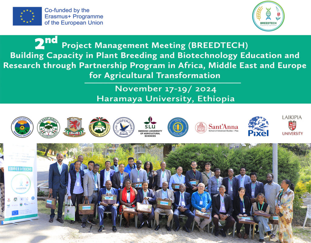 Al-Quds Open University participated in the 2nd. Project Management Meeting of the BREEDTECH “Building Capacity in Plant Breeding and Biotechnology education and Support through partnership program in Africa, Middle East and Europe for Agricultural Transformation “. The meeting was held at Haramaya University in Ethiopia on November 18-19, 2024. The project is being implemented by the university’s Continuing Education Center in collaboration with the Faculty of Agriculture, and is funded by the Erasmus+ program.